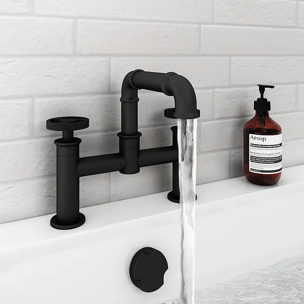 Arezzo Matt Black Industrial Style Bath Filler Tap