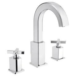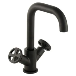 The M-Line Matt Black 3 Hole Deck Mounted Basin Mixer is perfect for creating a clean minimalist look. Made from brass with a trendy matt black finish, the range is characterised by it’s curved round spout and single lever handles. Supplied with co-ordinating pop-up waste.