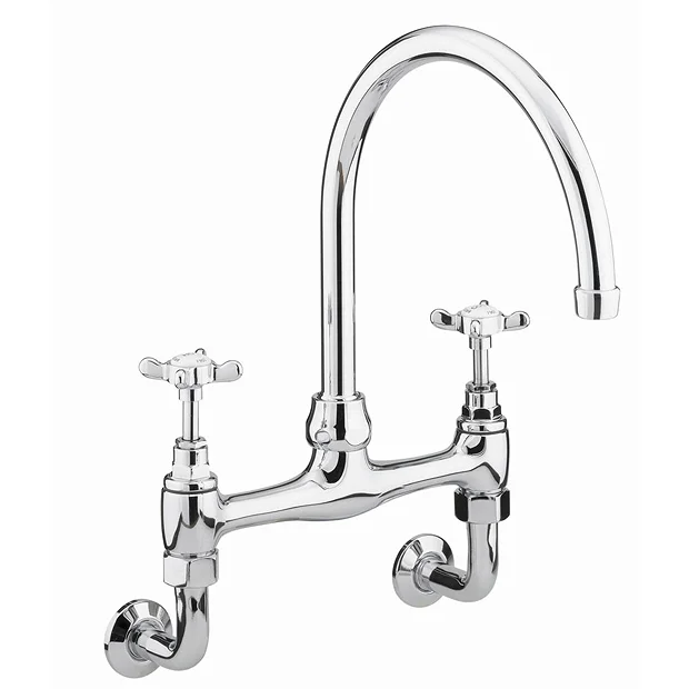 Bristan’s classic collection of traditional kitchen taps offer superb style that will stand the test of time. The 1901 traditional range is a timeless design that will never date. This elegant Wall Mounted Bridge Kitchen Sink Mixer is constructed with an all brass body with white ceramic indices and is suitable for all plumbing systems.