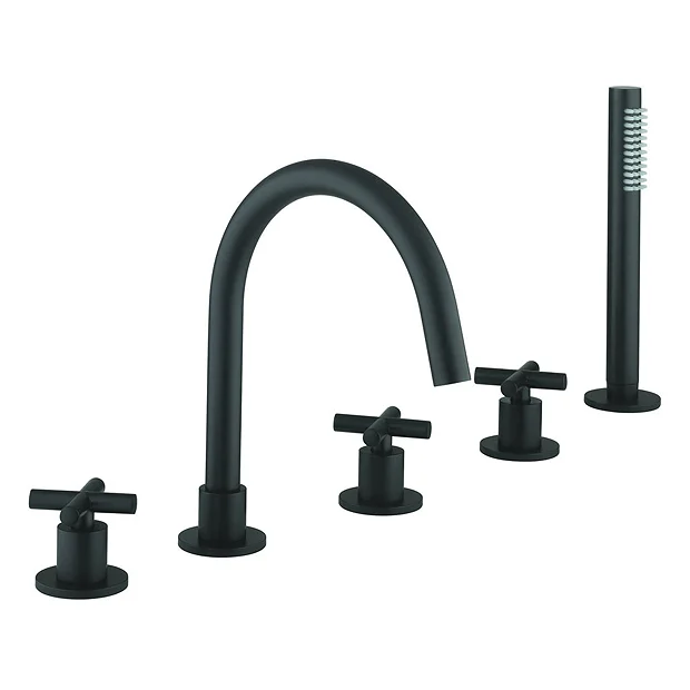 Crosswater MPRO Crosshead Matt Black 5 Hole Set Bath Shower Mixer – PRC450DM