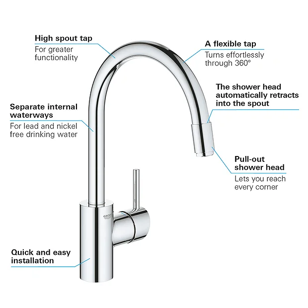 Grohe Concetto Kitchen Sink Mixer with Pull Out Spray – Chrome – 32663003