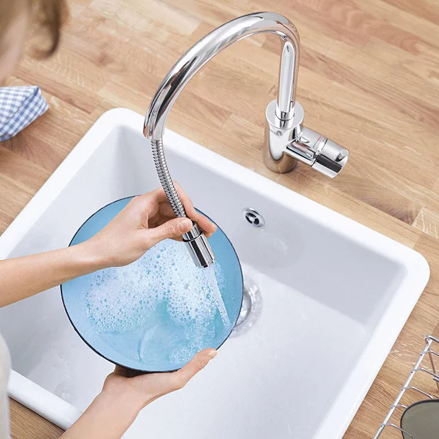 With the GROHE EasyDock system the shower head retracts with ease into the spout. Inside the monobloc mixer, the advanced GROHE SilkMove cartridge ensures smooth and reliable water and temperature control which will last the lifetime of your tap. GROHE Zero’s separated internal waterways provide guaranteed lead- and nickel-free drinking water. And with the dazzling GROHE StarLight chrome finish you can be confident in a scratch-resistant surface that will last and last.