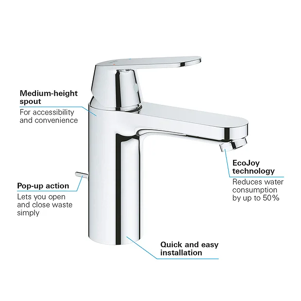 Grohe Eurosmart Cosmopolitan M-Size Mono Basin Mixer with Pop-up Waste – 23325000