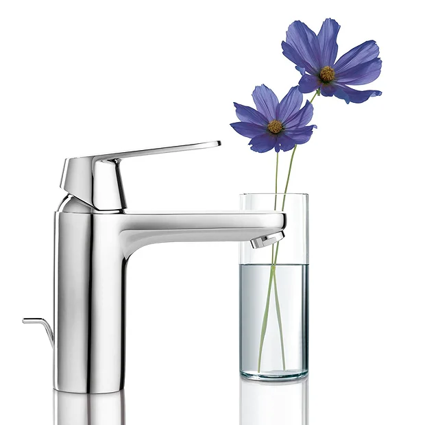 The Eurosmart Cosmopolitan M-Size Mono Basin Mixer features a modern design with state-of-the-art features and a convenient pop-up waste set – simply close the pop-up waste by pulling the rod at the back of the tap and push down to open it again to drain the water away. The tap features GROHE SilkMove cartridge technology for smooth and precision handling. Crafted from high quality materials and finished in a special chrome coating that is scratch resistant and easy to clean. All Grohe bathroom taps come with a 5 year guarantee.