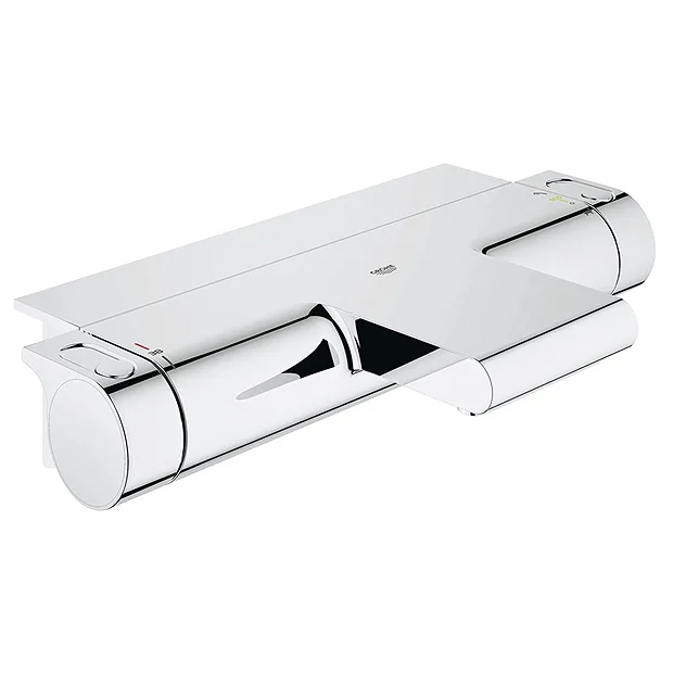 This Grohtherm 2000 Thermostatic Bath Shower Mixer delivers perfect water temperature control for your bath and shower. It’s extra-wide spout creates a silent waterfall effect while the integrated EasyReach tray keeps shower products to hand. It benefits from GROHE TurboStat® technology, your water temperature stays constant, regardless of any fluctuations in your water supply or water pressure. The GROHE Aqua Paddles are easy to use, even with soapy hands while the SafeStop button protects you and your children from scalding. The first limit is preset at 38°C. If desired, temperatures of up to 43°C can be selected upon deactivating the SafeStop button. With GROHE EcoJoy® technology, you can indulge in a perfectly comfortable shower or bath while reducing water consumption.