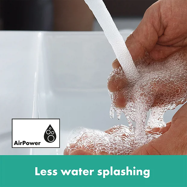 The highrise design of the Metris Single Lever Basin Mixer 260 makes it ideal for countertop basins. AirPower technology adds generous amounts of air to the water, creating a soft, splash-free spray while EcoSmart technology reduces the flow rate to save water and energy. Your tap will look beautiful and stay working for longer thanks to the QuickClean rub clean aerator loosening any limescale deposits.