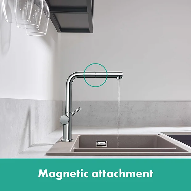 German engineered using premium materials and quality workmanship, the hansgrohe Talis M54 270 Single Lever Kitchen Mixer is water efficient and adds a stylish highlight to any kitchen. It features a pull out spray with single spray mode and a swivel spout that can be adjusted in 4 different angles allowing greater freedom of movement. The sBox makes for extra convenience, enabling your tasks to run smoothly. The hose can be pulled out and retracted smoothly in its box preventing it jamming up or being damaged. The hose weight is quietly routed, and is safe inside the box from any obstacles that stop it from functioning.