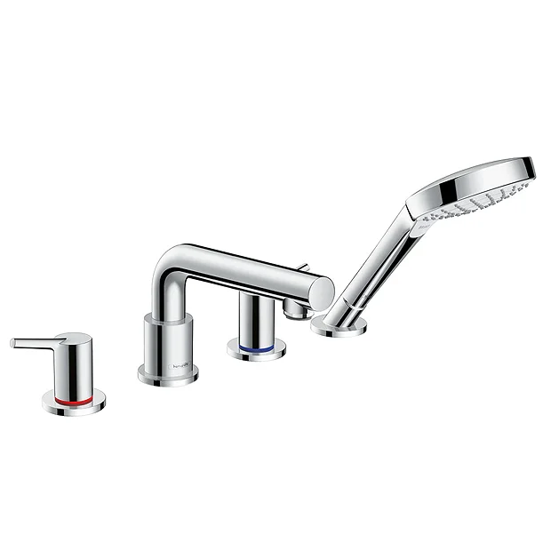 The stylish Talis S 4-hole Deck Mounted Bath Mixer consists of a 4-hole rim-mounted bath mixer, hand shower, shower hose and shower holder. AirPower technology adds generous amounts of air to the water, creating a soft, splash-free spray. EcoSmart technology reduces the flow rate to save water and energy while the QuickClean rub clean aerator loosens any limescale deposits making sure your tap looks beautiful, and stays working for longer.