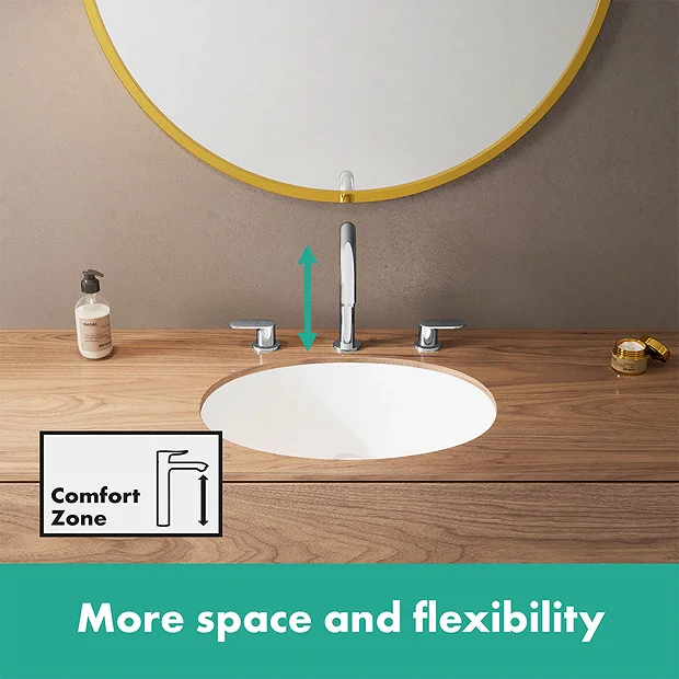 The harmonious design of Vernis Blend, with its gentle curves, has a modern and elegant look. This 3-hole basin mixer will fit in seamlessly into any modern bathroom. AirPower technology adds generous amounts of air to the water, creating a soft, splash-free spray while EcoSmart technology reduces the flow rate to save water and energy.