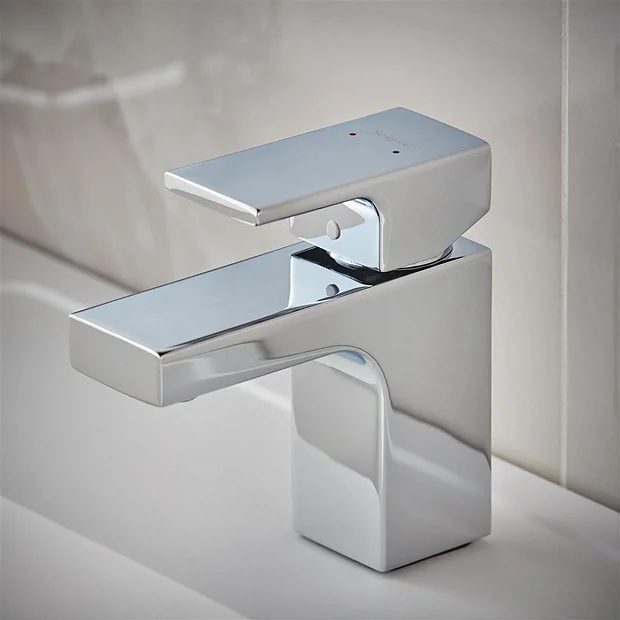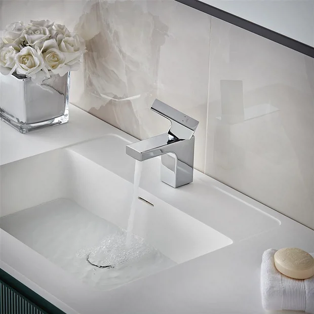 The geometric Vernis Shape variant, with its precise edges, stands for a visually striking look. This single lever basin mixer offers an economical way of adding designer elegance to your bathroom. AirPower technology adds generous amounts of air to the water, creating a soft, splash-free spray while EcoSmart technology reduces the flow rate to save water and energy.
