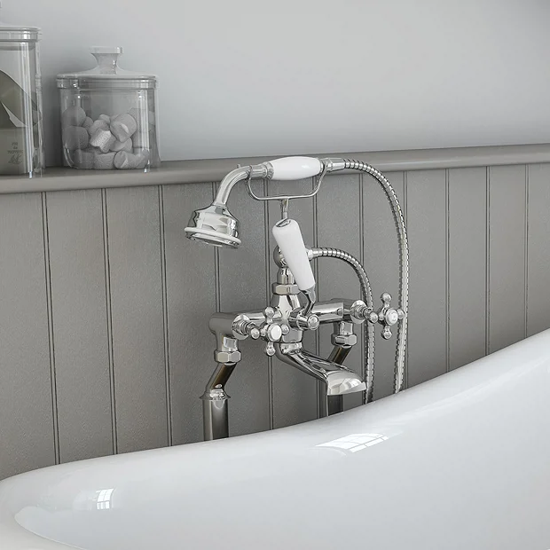 The Hudson Reed Topaz Edwardian Chrome Freestanding Bath Shower Mixer with Shower Kit offers the perfect upgrade for any traditional bathroom. Although these fittings are suitable for low pressure, we recommend a minimum operating pressure of 0.2 bar for best performance. The freestanding heavy duty bath standpipes have a fantastic chrome finish.