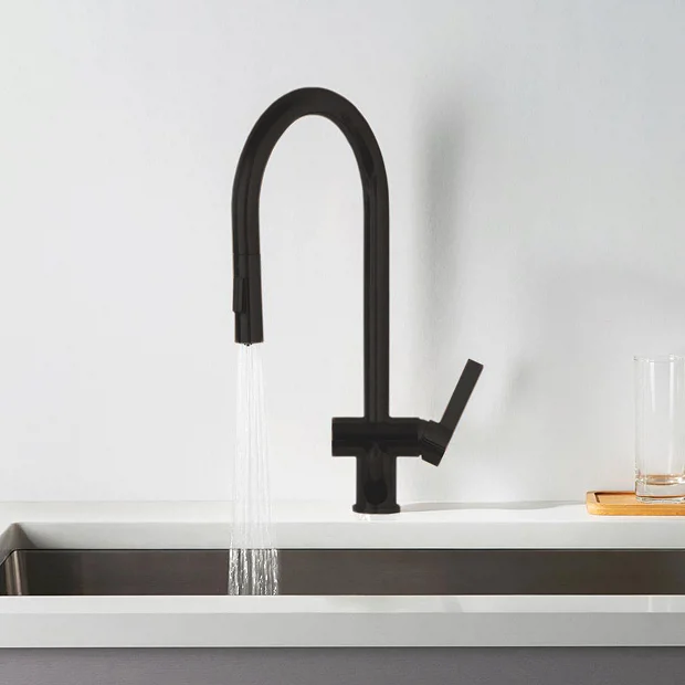 JTP Vos Matt Black Single Lever Kitchen Sink Mixer with Pull Out Spray – 28127MB