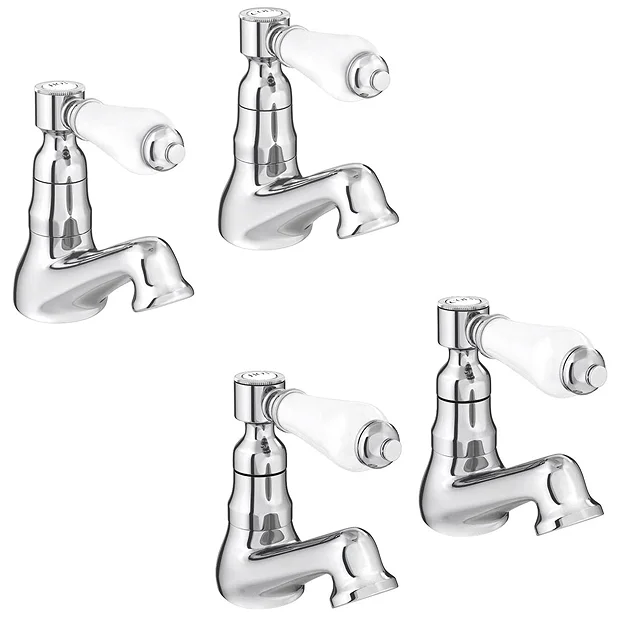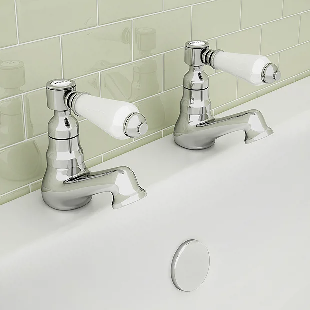 The Lancaster Traditional Basin and Bath Tap Set is a simple way to add a classic look to your bathroom. At 99mm high, both pairs of taps have a gleaming chrome finish with ceramic plated levers inspired by Victorian bathroom fixtures. The elegant lever handles offer smooth operation, allowing you to control the temperature and flow to your liking. This bath and basin tap set is made from durable brass that will stand the test of time. Pair these traditional basin taps with a Nuie Carlton Basin and Pedestal to complete your period look.