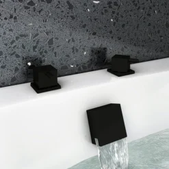Arezzo Square Matt Black Deck Bath Side Valves With Freeflow Bath Filler