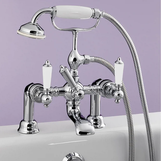 The stylish Berkeley traditional bath shower tap with shower kit, featuring a classic design which will bring a touch of sophistication to your bathroom. Manufactured from solid brass with a stunning hand polished chrome finish and engineered to the highest possible standards. Comes with a 5 year guarantee. Includes standard cradle, ceramic diverter, flexible hose and ceramic telephone handset.