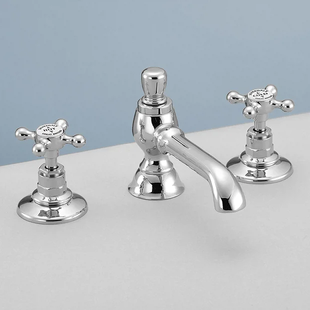 Silverdale Victorian 3 Hole Basin Deck Tap with Pop Up Waste Chrome